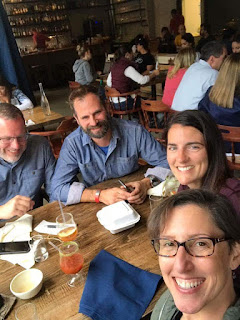 I just couldn't take another meal in the hospital cafeteria. Nor could I make that be Bruce's only Boston meal. So, we walked over to Sweet Cheeks near Fenway. We ordered our lunch and our nurse called. She wanted us to come back because they were ready to discharge her. So we had them box up our lunch and to try to get there faster, we ubered there. Which was painful, because traffic was so heavy, it felt like it would've been faster to walk! After a month of walking almost every where, it was hard to sit in a car when I wanted to hurry. We were less than a block away and traffic was at a standstill. So I said we will just jump out here and walk. And, of course, we watched the car pass us and drive on by while we walked the rest of the way. So typical.